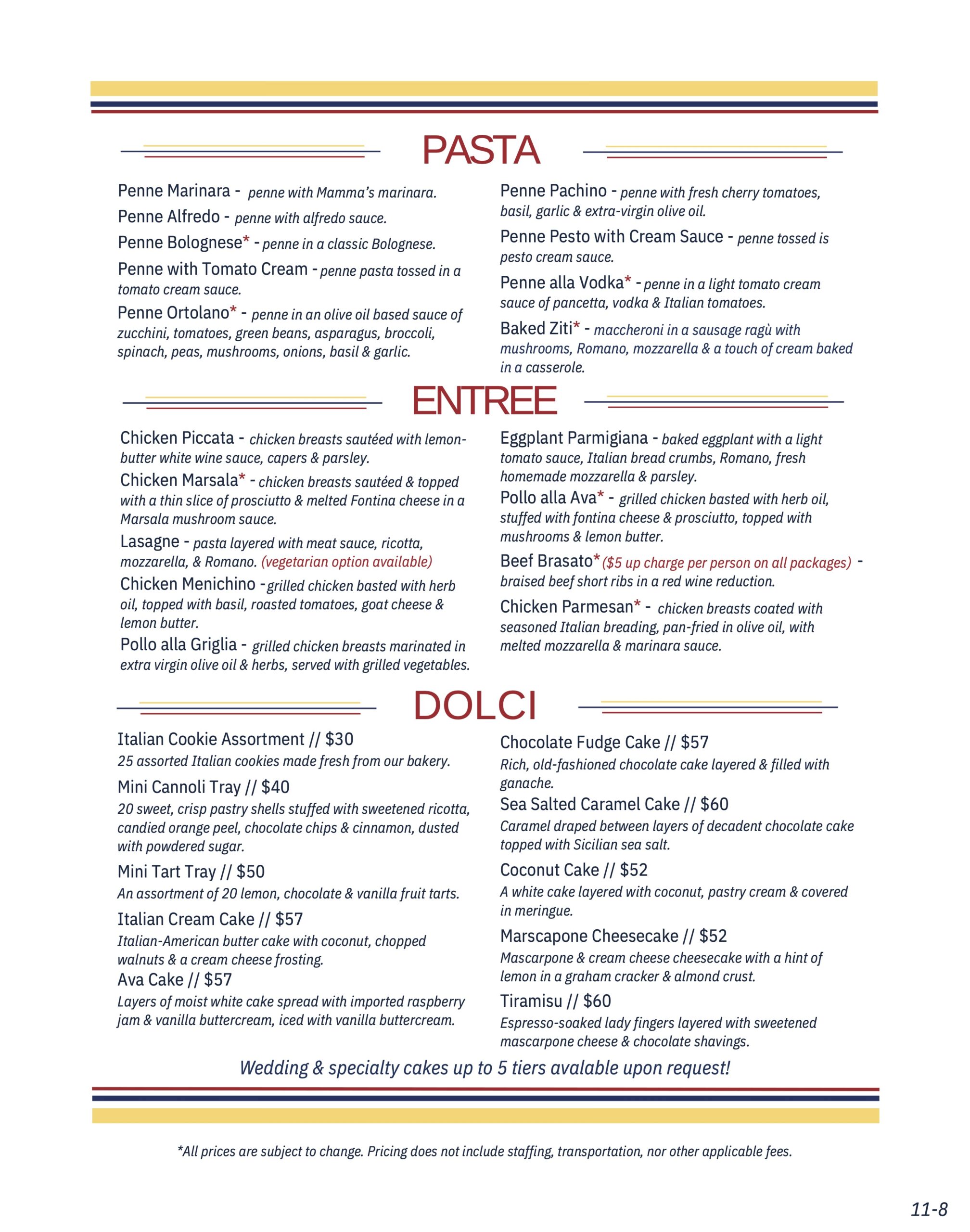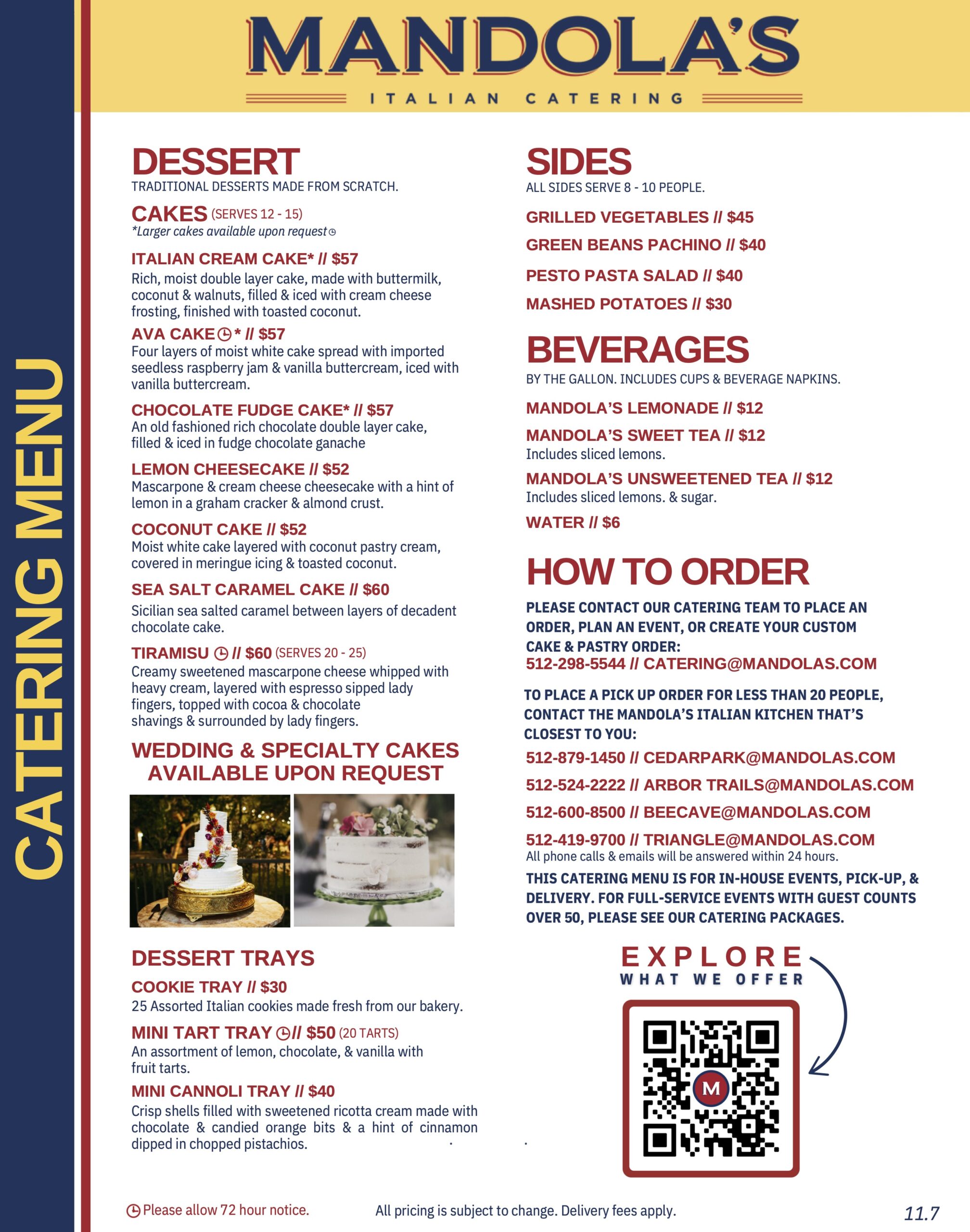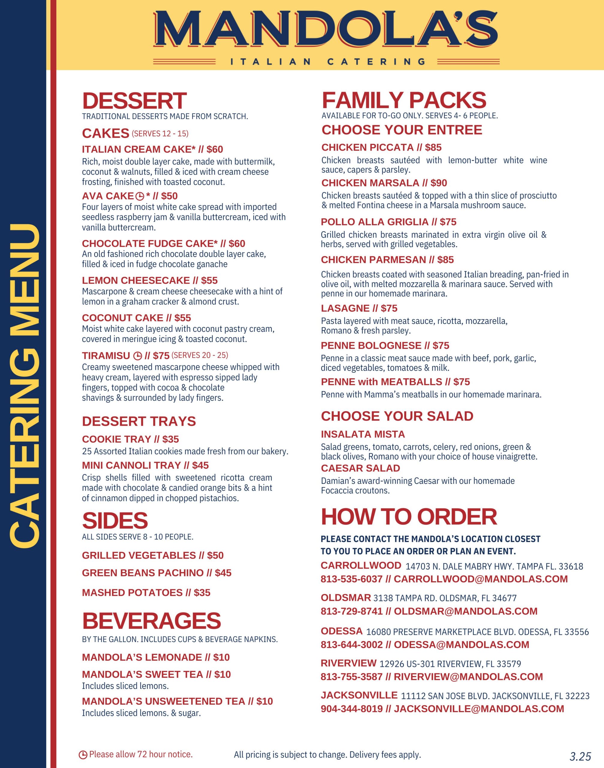 *Please allow 72 hour advance notice for catering orders.